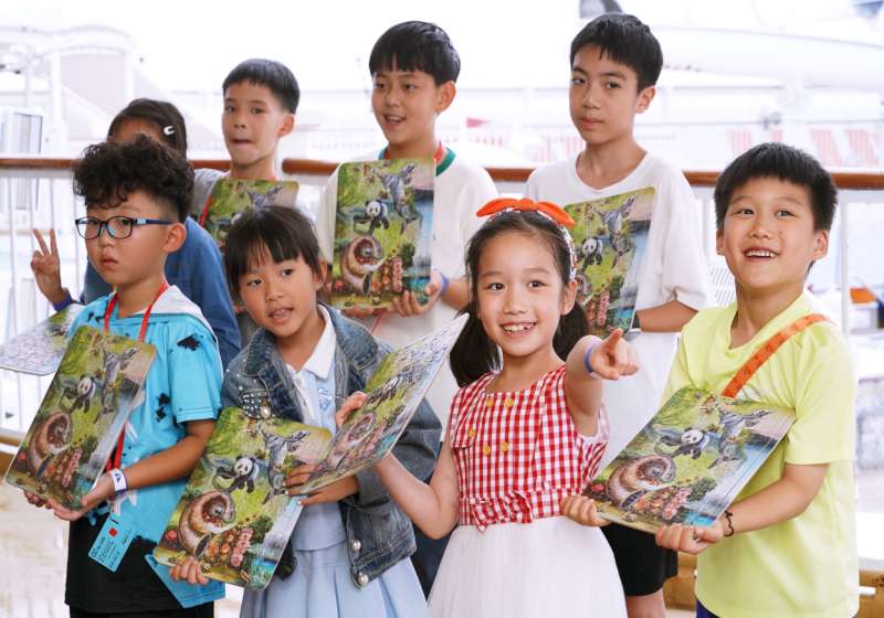 帛琉無私分享號泊靠高雄港 高市前鎮國小、屏東縣大潭國小雷雕帆船吊飾迎賓