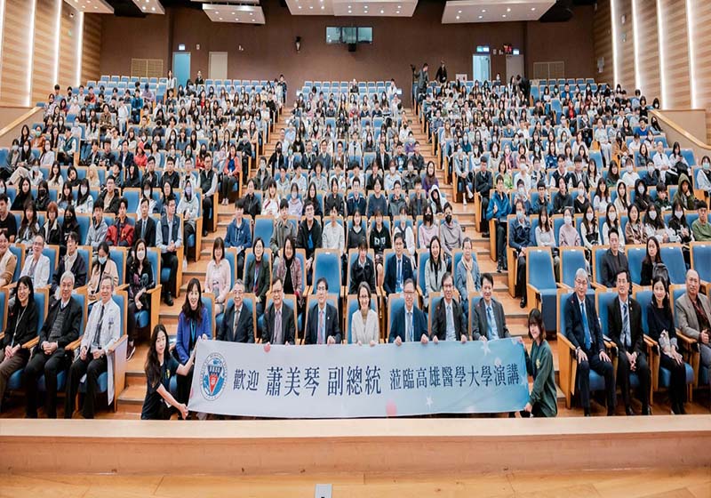 副總統蕭美琴(圖一)1月3日受邀高雄醫學大學專講,手寫板「用智慧與良善,讓臺灣更好!」期勉學生,並與在場近700名師生分享從事公共事務及外交工作經驗。