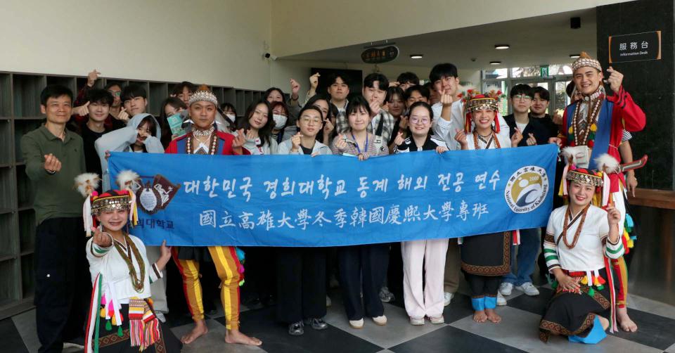 韓國慶熙大學(Kyung Hee University)師生參訪姊妹校國立高雄大學文化研習與走讀交流,高大東亞語文學系副教授、冬季韓國慶熙大學專班負責人王清棟說,為期2週專辦1月中起跑,規劃決策智慧、哲學應用、哲學與藝術鑑賞、西方與亞洲文化比較、台灣近代歷史、族群與語言等課程,並帶領學員走訪台南安平港國家歷史風景區、屏東台灣原住民族文化園區、高雄駁二藝術特區、鵝鑾鼻燈塔等景點,感受台灣多元族群融合及時代歷史更迭。
