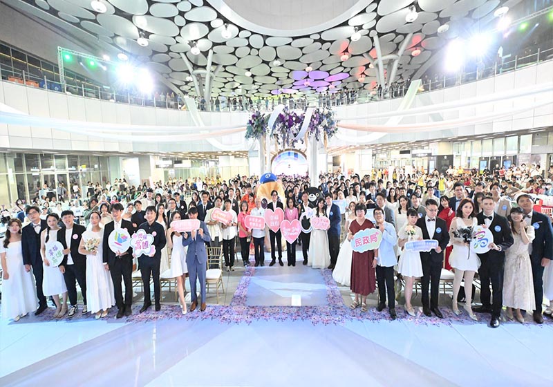 高市民政局114年市民集團婚禮11月9日在台鐵高雄車站下沉式廣場舉行,主題定為幸福圓舞曲,市長陳其邁、市議會議長康裕成啟動幸福列車,並與副市長李懷仁、民政局長閻青智、社會局長蔡宛芬等人領軍115對新人宣誓共結連理, 陳其邁勉勵大家未來相互扶持、包容,成為彼此堅強後盾,邁向結婚、育兒、安居美好人生。