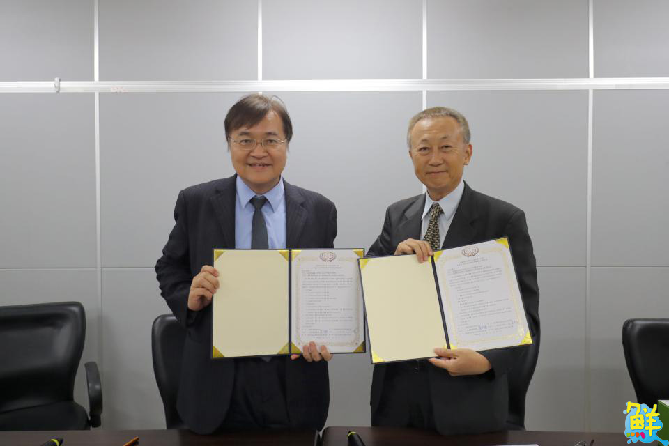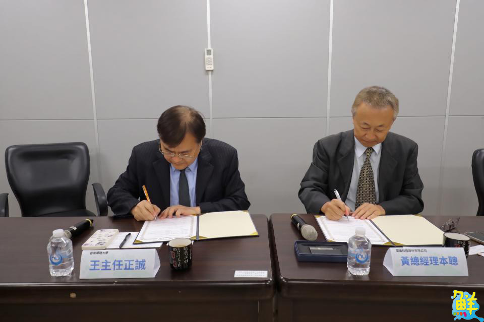 ▲嘉藥消防系主任王正誠(左)與雲義科技公司總經理黃本聰共同簽署合作備忘錄