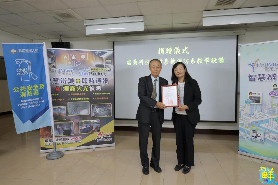 日前嘉南藥理大學與雲義科技股份有限公司合作備忘錄(MOU)簽署暨「UniPicket 視衛通AI影像辨識設備」捐贈儀式。由嘉藥副校長劉瑞美主持,宣布雙方未來將針對產業人才培育與智慧防災研究展開深度合作。此次獲贈的先進AI影像辨識系統將直接導入教學現場,全面提升學生的科技防災實力,引領台灣防災技術邁向智慧化轉型。