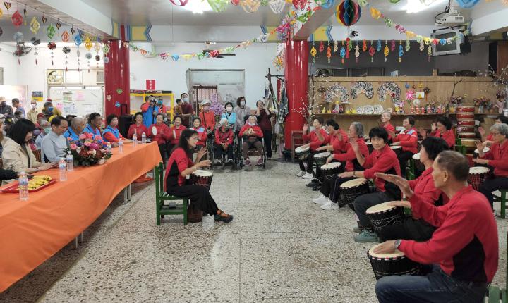 醫美領導品牌愛爾麗集團總裁常如山(圖二右一)、總經理劉貞華(圖二右二)2月7日現身高市旗山區旗尾代天后宮,致贈美濃、旗山兩地滿65歲長者新春敬老紅包逾800份,旗山東平社區香蕉學堂學員太鼓、非洲鼓等演奏組曲歡喜迎賓,並致贈社區刊物表達感謝。