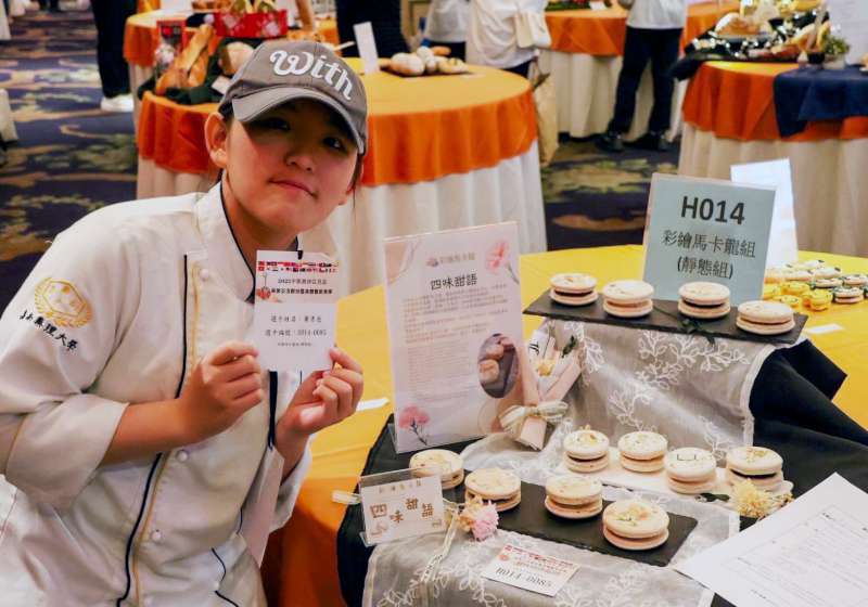 ▲嘉藥餐旅黃郁恩在創意藝術馬卡龍組奪得金牌