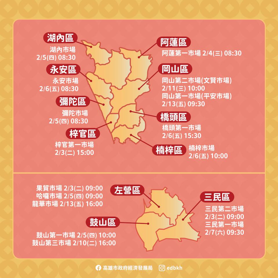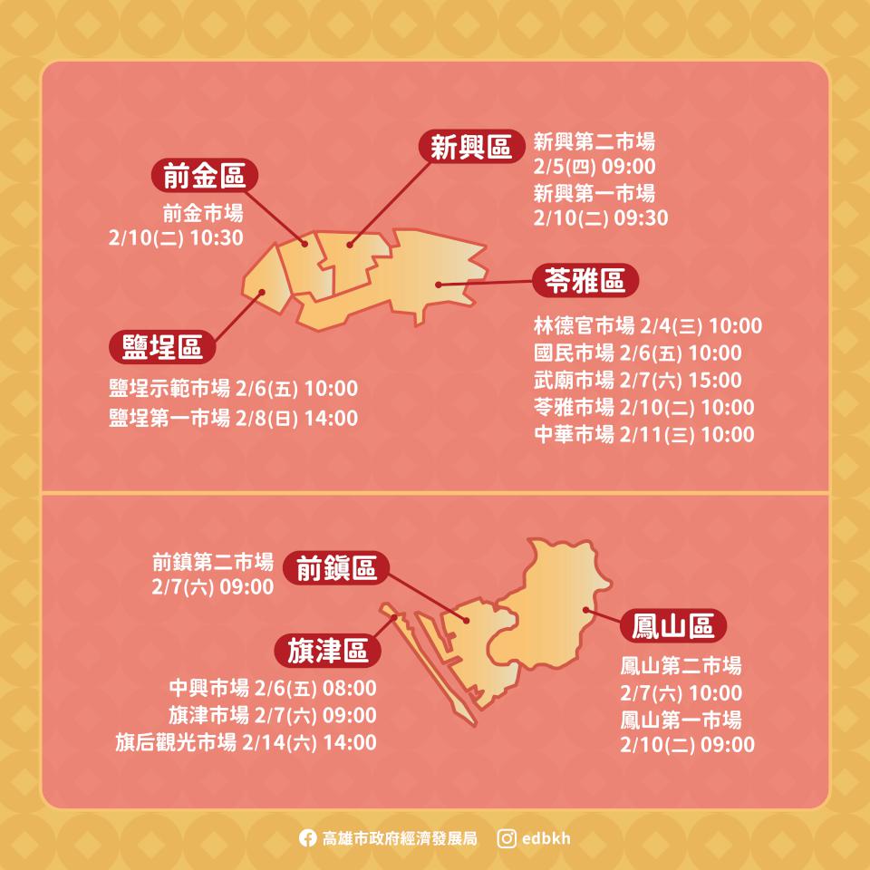 高市經發局115年馬年開運小紅包活動2月3日至14日巡迴龍華、武廟、哈囉、岡山文賢等36處公有市場舉行,經發局長廖泰翔說,傳統市場新鮮蔬果、生鮮肉品、海產乾貨、熟食年菜等商品多元,=提供民眾選購年菜及伴手禮最佳場域,市府近6年投入8億3400萬元,推動80處市場與攤集場改造升級,114年18處市集及166名攤商通過經濟部評核,國民市場國民魚丸料理全台唯二、南部唯一榮膺五星金賞名攤,另有52處五星及四星樂活名攤,相較113年成長逾4成。