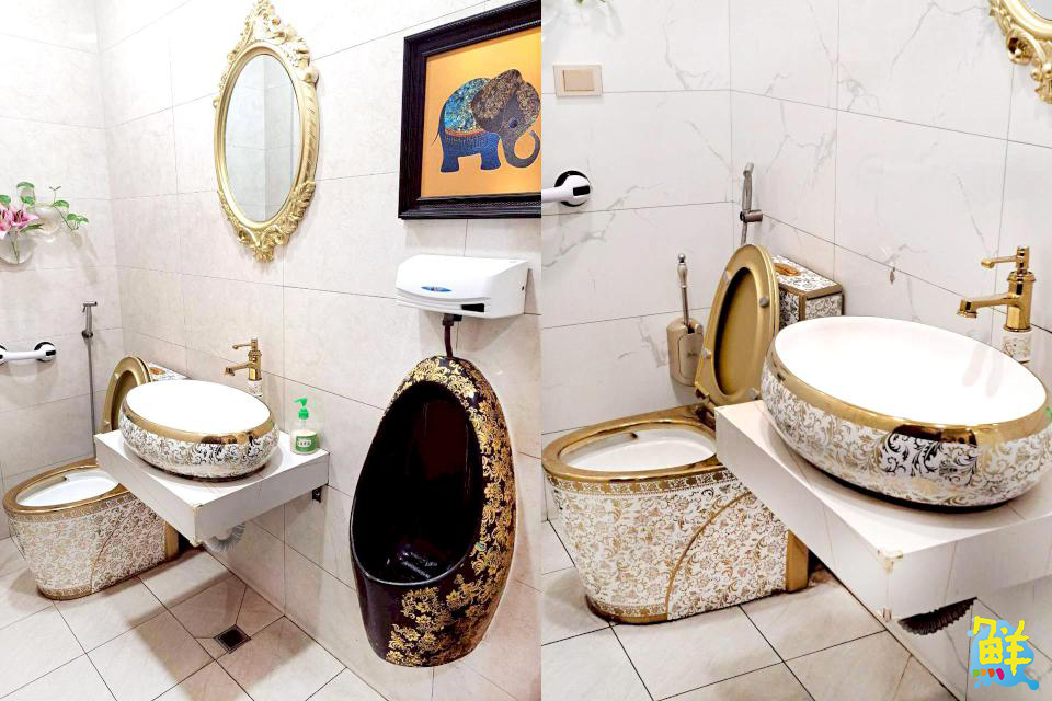 ▲鑲金的化妝室!連化妝室都打造的媲美五星級飯店的高級感,處處彰顯創辦人的品味不凡。