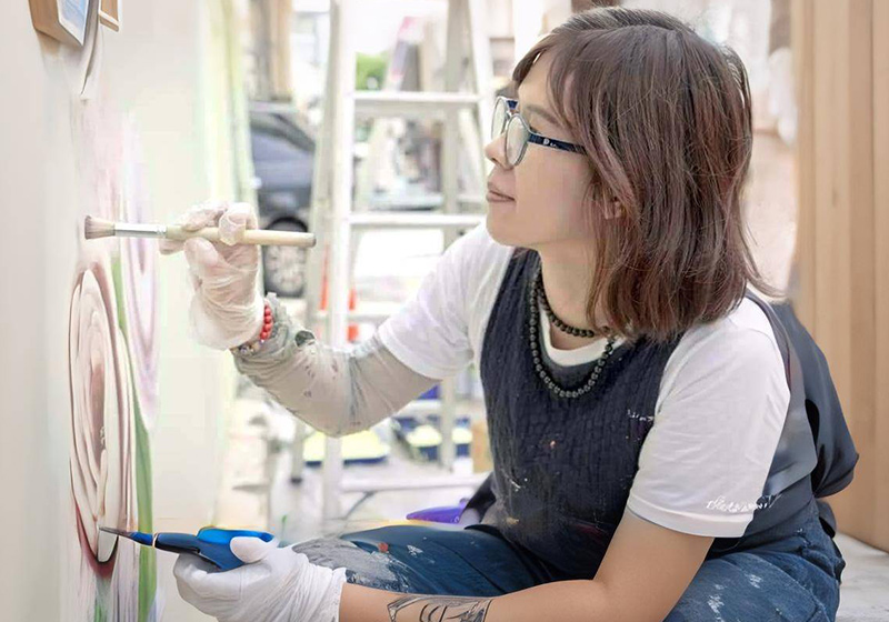 除了課程教學,牆壁彩繪更是「依家諾手藝坊」最大的亮點。高雄有許多美學創作都是出自鄭世惠老師之手。從光華夜市入口的裝置藝術、左營果貿社區的彩繪藝術、衛武營的彩繪,一直到中正技擊館的彩繪…等等,樣樣展現老師對美術的熱愛,以及對城市與人文生活的細膩觀察。不只如此,老師的畫筆更延伸至雜貨店、民宿、宮廟、學校,一筆一畫為平淡無奇的房屋畫上最吸睛的妝,搖身一變成大街小巷的焦點。鄭世惠老師表示:「每一次的委託,都是對品牌彩繪專業的肯定,我們會仔細聆聽客戶的需求,抓出他們的亮點,創作出獨一無二的繪畫作品。也希望這些作品不只能帶給視覺上的驚喜與心靈上的觸動,也呼籲大眾:只要用心感受,就能發現美其實並非那麼遙不可及,而是悄然流動於我們的日常之中。」