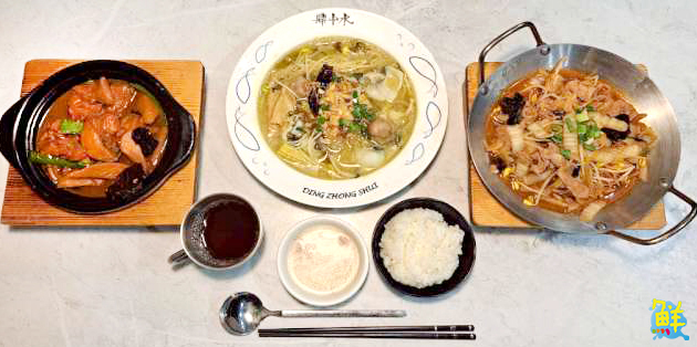 ▲黃燜雞米飯、酸菜魚、黃燜豬肉齊聚一堂,絕對是最豐盛的一餐!