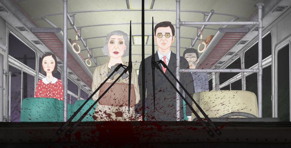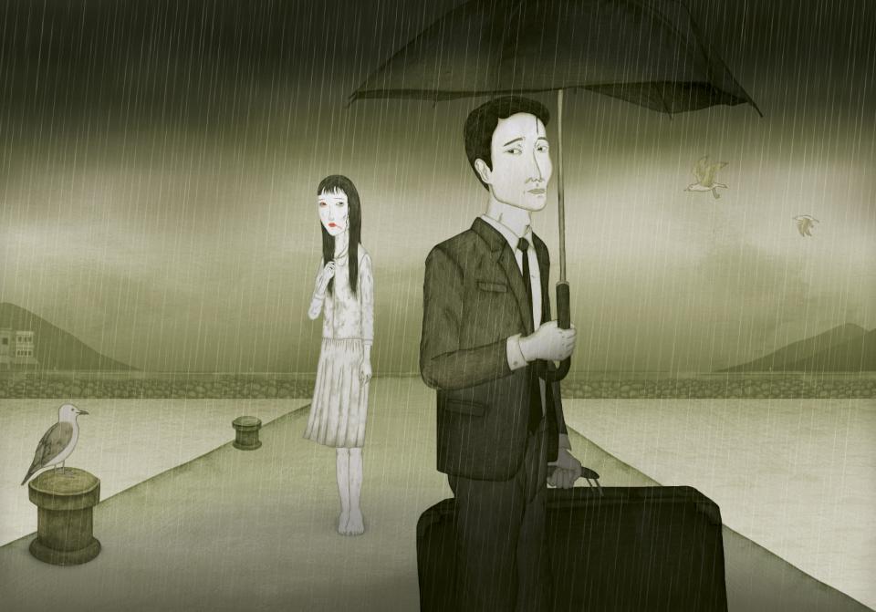 「螳螂—謝文明動畫短片輯」聯映金馬最佳動畫短片《螳螂》(圖十)、《夜車》(圖十一)、《禮物》(圖十二)、《肉蛾天》(圖十三)等,3月15日映後座談,謝文明與陳淑芳同台分享創作與配音經驗。