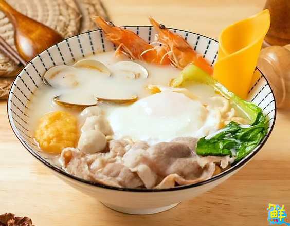 ▲原味鍋燒:如果你是鍋燒基本教義派,選這碗就對了!以每日現熬豬骨湯為基底,再配上新鮮白蝦和蛤蜊,保證鮮味濃厚不油膩!也可以選擇不加沙茶喔