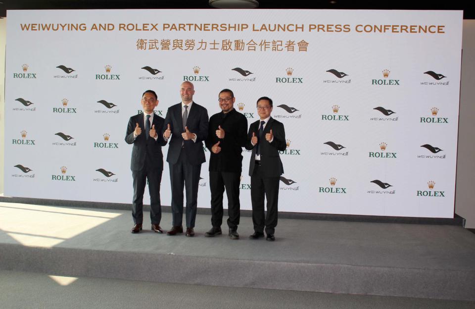 勞力士大中華區行政總裁馬思明(Maxim LAMARRE)(圖左二)、台灣總經理林人和(John LIN)(圖左一)、衛武營國家藝術文化中心藝術總監簡文彬(圖右二)、營運副總監黃國威(圖右一)等人1月19日領先全台藝文場館宣布締結合作夥伴關係,象徵衛武營攜手名錶品牌推動台灣文化藝術接軌國際舞台,勞力士、衛武營等人見證,簡文彬說,場館2018年啟用,致力深耕歌劇、舞蹈及傳統戲曲,守護文化根基同時尋求突破當代語境,落實眾人藝術中心願景,合作單位追求卓越品質及永續傳承,呼應衛武營發展策略,期盼台灣獨有文化創意力獲得肯定,