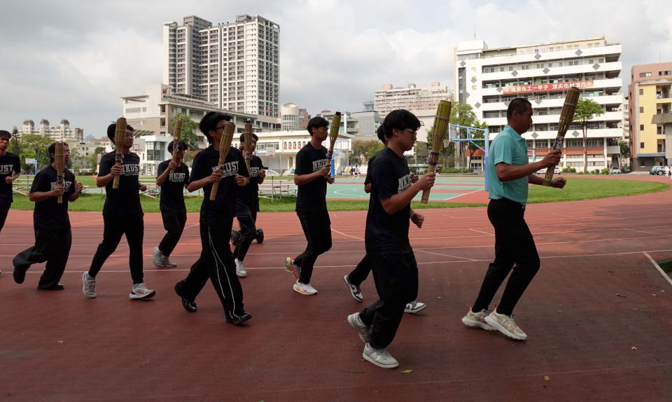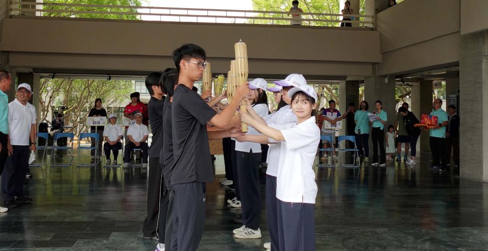 吳忠信說,聖火點燃賽事,傳達團隊熱情與鬥志,期許選手全力以赴、發光發熱,李祐穎說,聖火傳遞延續體育精神,展現各校互動情誼,期勉代表隊選手突破自我、為校爭光。圖/高科大提供、文/高培德