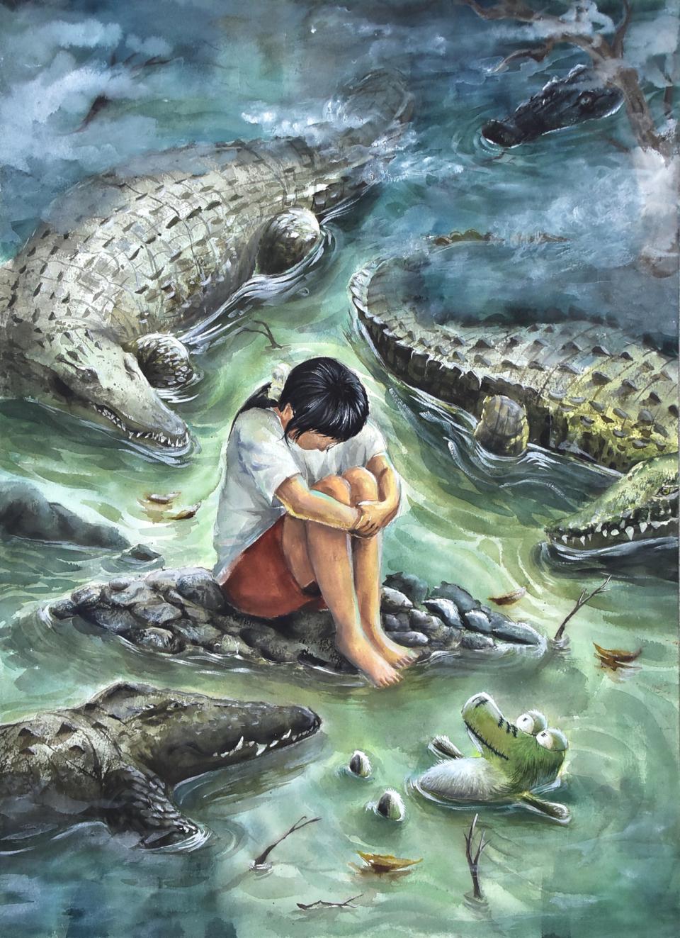 三民國中學生侯姿聿西畫「看不見的危險」(圖三)同獲114學年度全國學生美術比賽高市初賽西畫類佳作,作品中逼真鱷魚象徵畢業未知考驗,遠去玩偶代表告別童年,勇敢面對危險考驗。