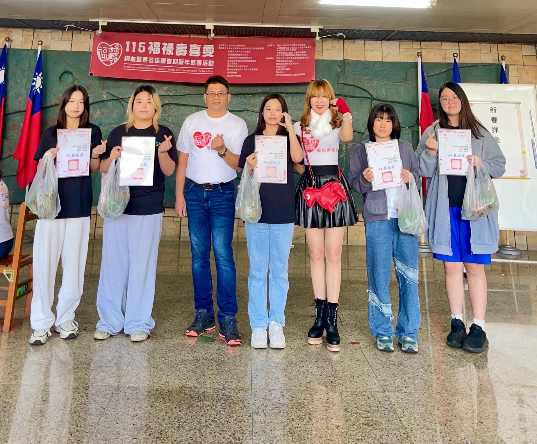 福祿壽喜愛學校家長會長發起「115 福祿壽喜愛—迎新春捐血暨寒冬送暖喜迎新年慈善活動」1月18 日在高市左營區福山國中舉行,募得近70萬元挹注捐血推廣與寒冬送暖相關活動經費,社會局也致贈弱勢家庭新年賀禮,同時募得近500袋熱血,現場同步宣導反毒、反詐與家暴防治,並邀請書法名家揮毫贈春聯,福氣行動家族總團長、中山大附中榮譽會長、庭彥企業董事長李宥霖攜手中山高中家長會榮譽會長、前聖骨科診所執行長謝靜蕙號召榮譽家長會長、企業及各界善心人士捐資50萬元,並獲發大財漁業董事長孫志強、財團法人東南文化基金會、榕茂集團執行長賴曼綺、盧文炳、靜合佳企業董事長邱介進、椿棋企業董事長陳玟瑄、家長會長陳乃琦、山頂居甕仔雞董事長陳惠琪、董事長梁文光、國立高雄科技大學企管系系友會等支持。圖/教育局提供、文/高培德