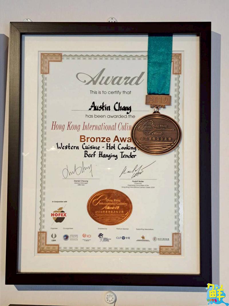 ▲阿源主廚榮獲2019年上海國際烹飪比賽「烹飪海鮮與肉類」雙銀牌