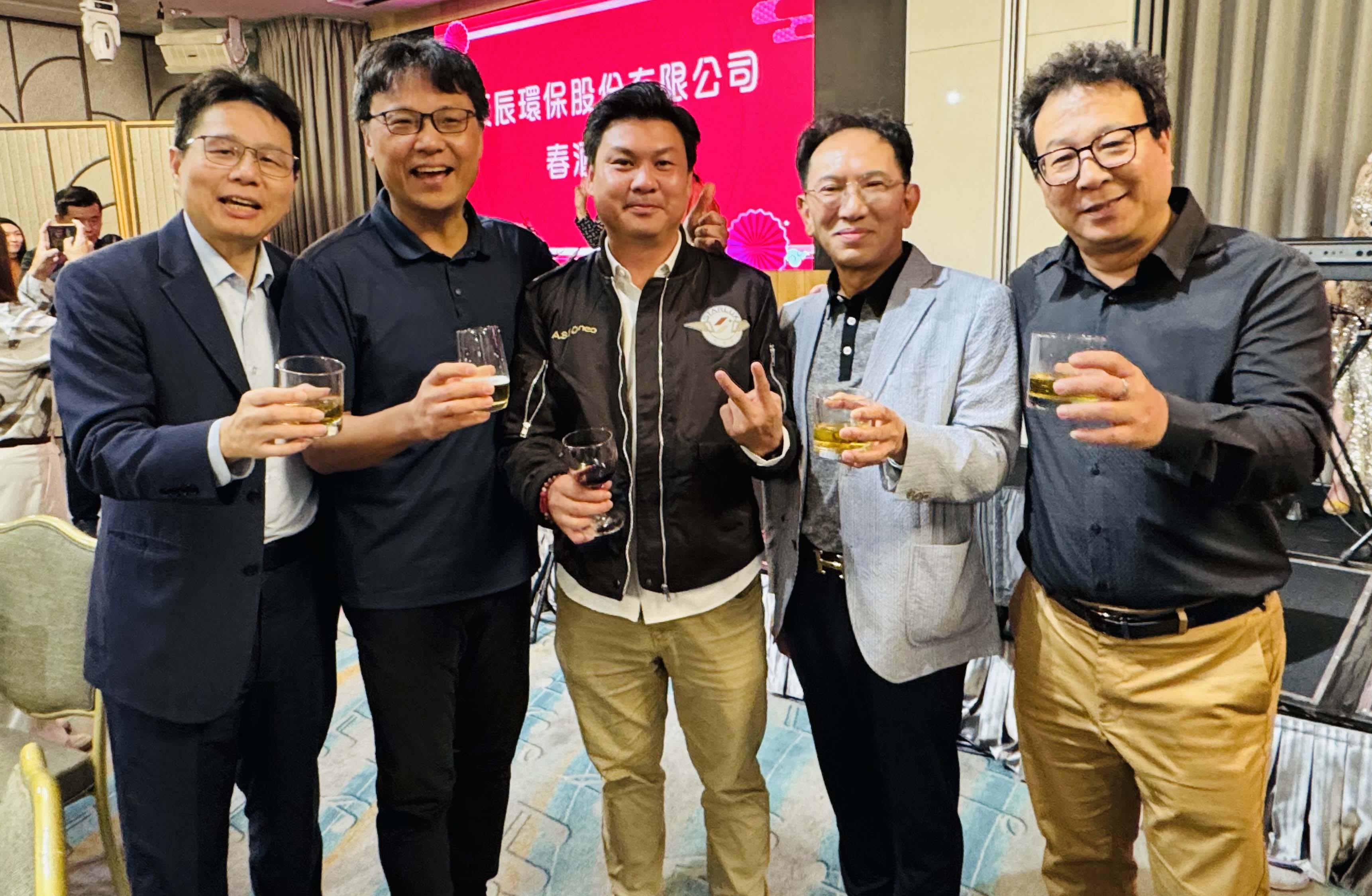 高市天辰環保2月26日晚間舉行春酒饗宴,席開12桌宴請同仁,董事長黃天佑(圖一中)表揚全勤、推廣、質深、特優等得主,佳龍科技董事長吳界、新高市商業會理事長劉正光等人見證誌慶。黃天佑回顧民國97年創業迄今艱辛歷程,初期和母親攜手承租面積200坪廠房從事資源回收,感謝員工、客戶及策略夥伴支持,自許帶領企業躋身品牌價值創造者,廢棄物經分類重製可回收再利用友善環境,續優化製程,翻轉各界負面印象。
