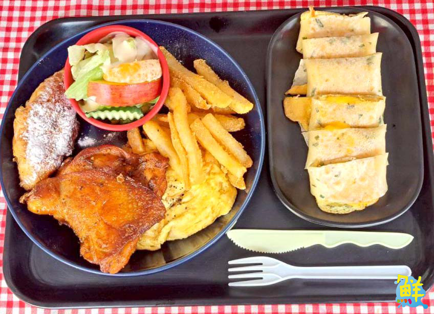 ▲香酥迷迭雞腿排套餐:煎的酥脆的雞腿排配上薯條和蛋餅,瞬間勾起食慾!