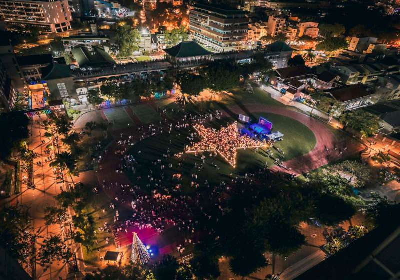文藻外大吳甦樂教育中心將臨期燃燈禮 師生校友燭光排列巨星點亮高12公尺聖誕樹