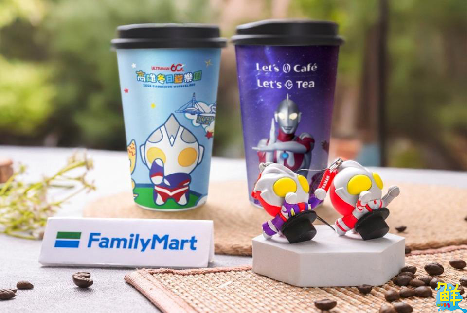 全家便利商店補充,2月4日起,凡購買大杯 Let's Café 或 Let's Tea 即可隨機獲得聯名杯款;第二波聯名周邊「超人力霸王造型杯塞」於2月11日登場,凡購買任2杯Let's Café 或 Let's Tea飲品,即可加價 59 元入手(隨機出貨,數量有限、售完為止)。