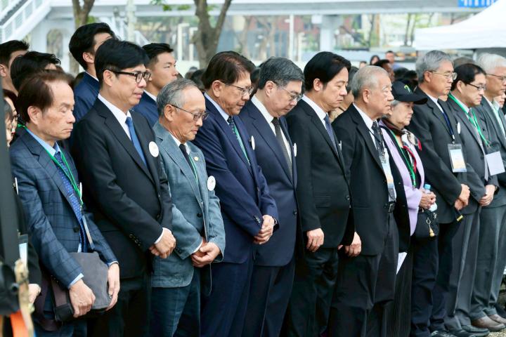 賴清德說,儀式追思228受難者並慰問家屬,戒嚴時期驅動國人追求民主意志,114年首次主持228中樞紀念儀式,宣示加速開放政治檔案開放;追查真相、落實轉型正義;避免類似事件重演。圖/新聞局提供、文/高培德