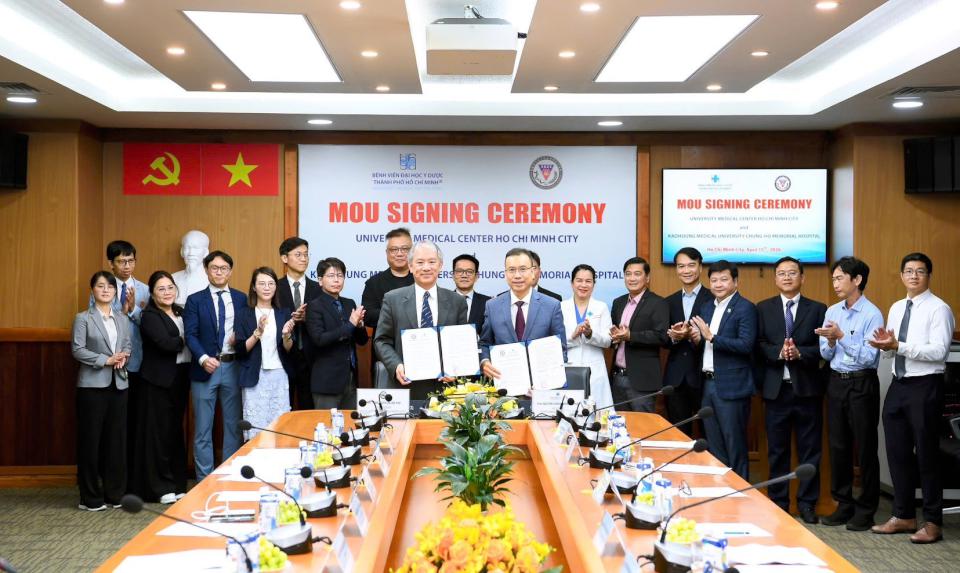 高醫副院長林宗憲副院長領軍醫、護、行政跨學科代表團4月與越南胡志明市醫藥大學醫院(University Medical Center Ho Chi Minh City)續簽合作備忘錄(MOU),深化智慧醫療架構與高端技術等合作,高醫團隊此行也首度參與2026年大水鑊醫院科學年會,關注全球前瞻診斷與治療技術。雙方2022年首次簽約合作,已建立醫師代訓與學術交流模式,高醫院長王照元說,續約展現台灣智慧醫療與整合照護國際影響力,未來續秉持共榮互惠,攜手新南向夥伴打造人才培育、科研合作、臨床創新永續區域醫療生態系,胡志明市醫藥大學醫院副院長Nguyen Hoang Dinh說,醫院選派多名醫師前進高醫研修測試心肺運動功能,肯定高醫通過 HIMSS EMRAM 第七級(Stage 7)認證,建立外傷、急重症相關系統模型。