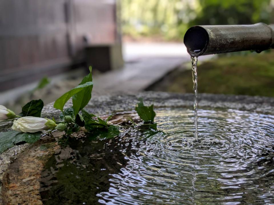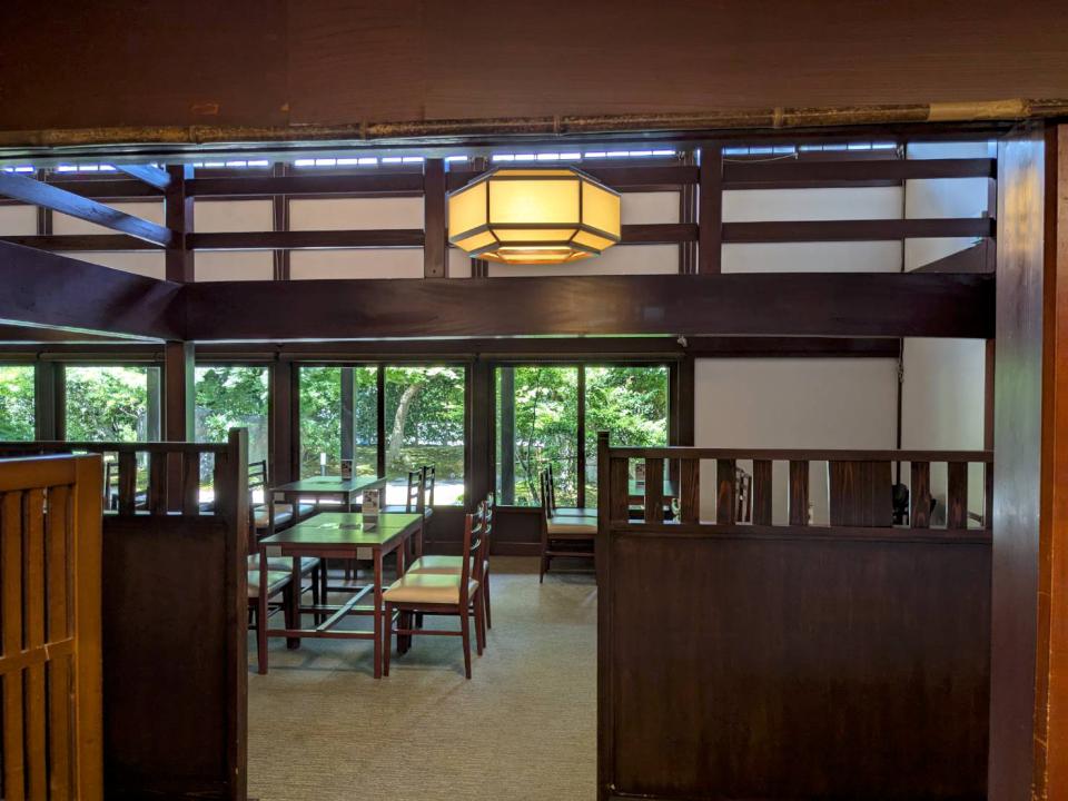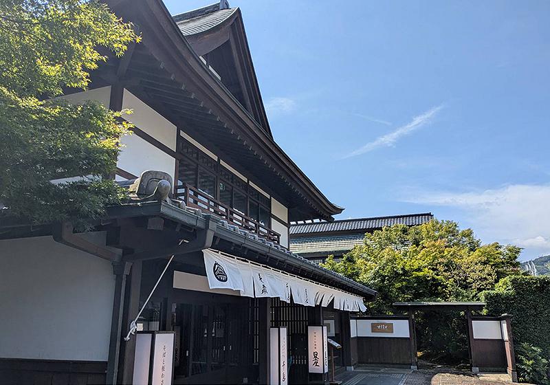 餐廳是一棟江戶風格的建築,入口在正中央,不過我更喜歡從停車場旁的庭園入口走進去。穿過綠蔭,伴著水聲,那份清幽的自在感,讓人心都靜下來。