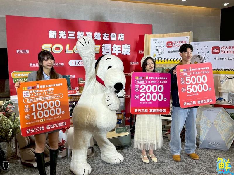 新光三越高雄左營店週年慶將於11/6(四)-11/30(日)登場,網羅最獨家、備貨最齊全的趨勢商品,搭配超強檔卡友禮—會員獨享超狂滿仟贈仟點活動、風靡全台「Snoopy」系列卡友禮,打造全台最具話題的購物盛會!