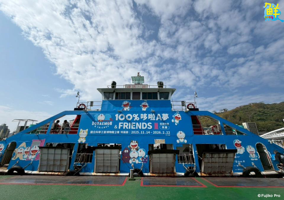 由AllRightsReserved在Fujiko Pro協力下創作的《100%哆啦A夢&FRIENDS巡迴特展 高雄站》即將進入最後閉展倒數,特別與高雄輪船進行聯名活動,即日起至2月22日期間來到高雄鼓山、旗津搭乘渡輪,就有機會看見這艘超可愛的哆啦A夢冒險渡輪!高雄輪船另規劃春節初一至初五12:00起,於鼓山輪渡站行人候船室搭乘渡輪,贈送哆啦A夢小扇(活動期間每日限量200份,送完為止)。