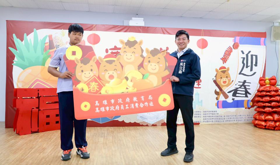 高市教育局115年弱勢學童寒冬送暖幸福團圓活動2月4日在內門國中舉行,捐贈攜手高市餐盒食品商業同業公會、高雄市各級學校家長會長協會、員工消費合作社、中小學校長協會等募得245份年菜、405份福袋與紅包,內門區野森動物學校也加碼致贈學童門票,嘉惠405名偏鄉弱勢家庭學童,還邀請國立高雄師範大學書法教學所碩士、前高市蘭亭書學會理事長張學隆及蔡典成現場揮毫春聯及安排內門宋江藝陣及觀亭國小絲竹樂表演。高市教育局長吳立森說,感謝社會各界溫情支持,帶給偏鄉家庭與孩子希望。圖/教育局提供、文/高培德