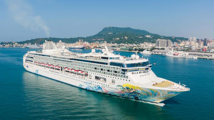 愛達女神重6.9萬公噸、長252公尺、寬32公尺,可搭載2050名旅客,從德國啟程展開為期133天航程,台灣首抵高雄,重7.5萬公噸、長269公尺、寬32公尺、可容納1856人探索星號114年11月16日首航高雄,展開為期75天航程。圖/臺灣高雄港務提供、文/高培德