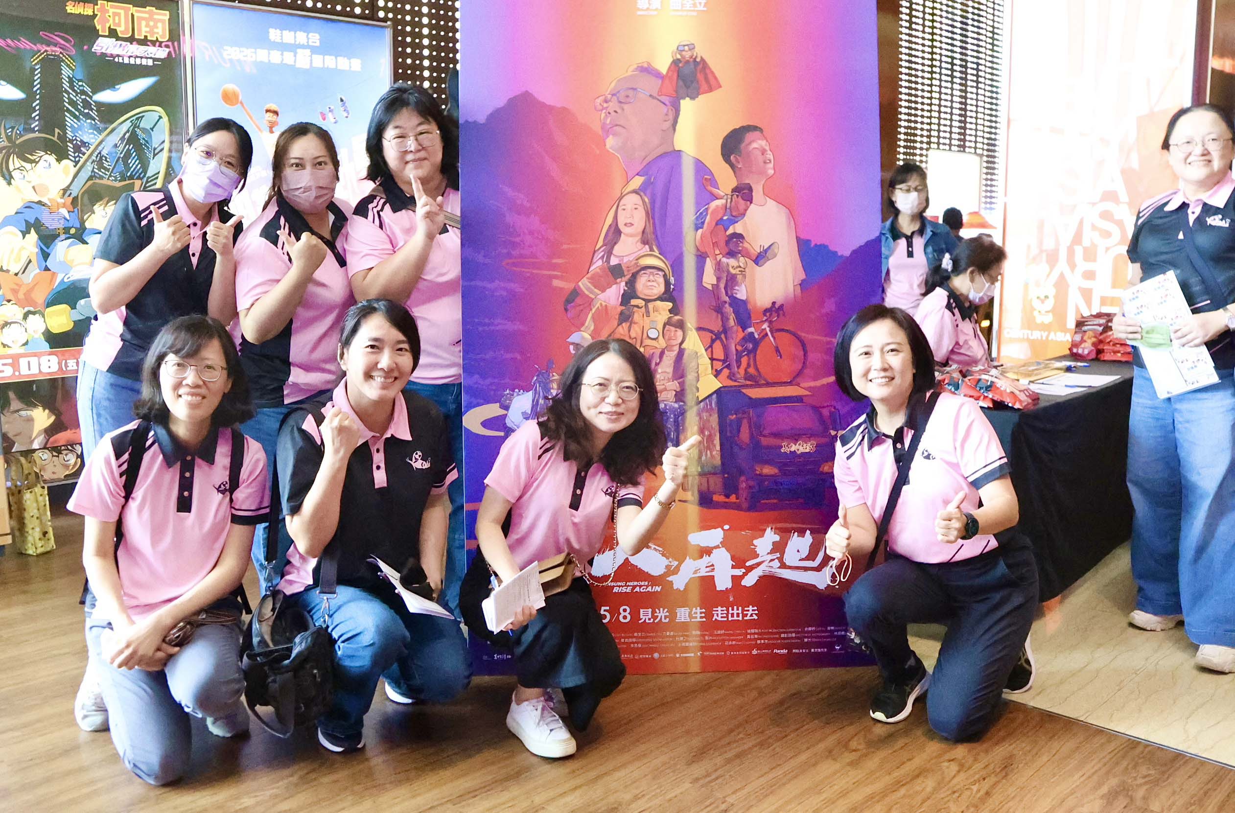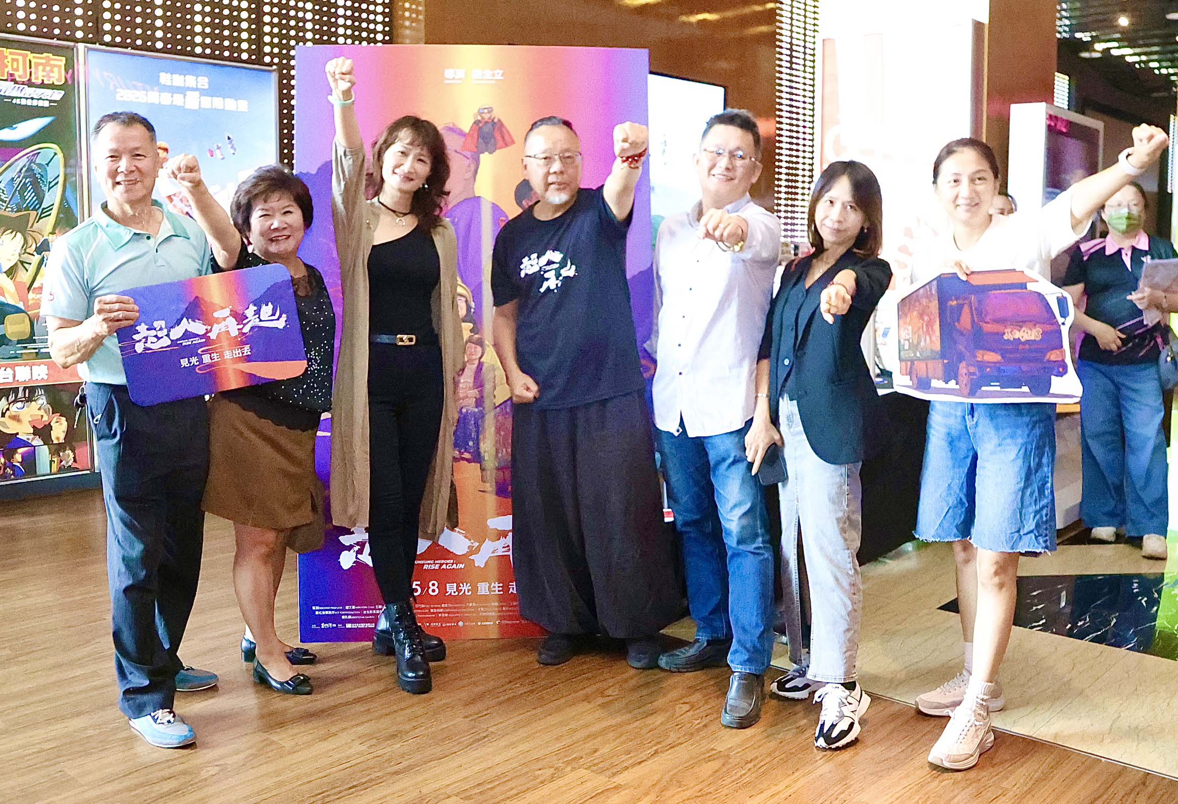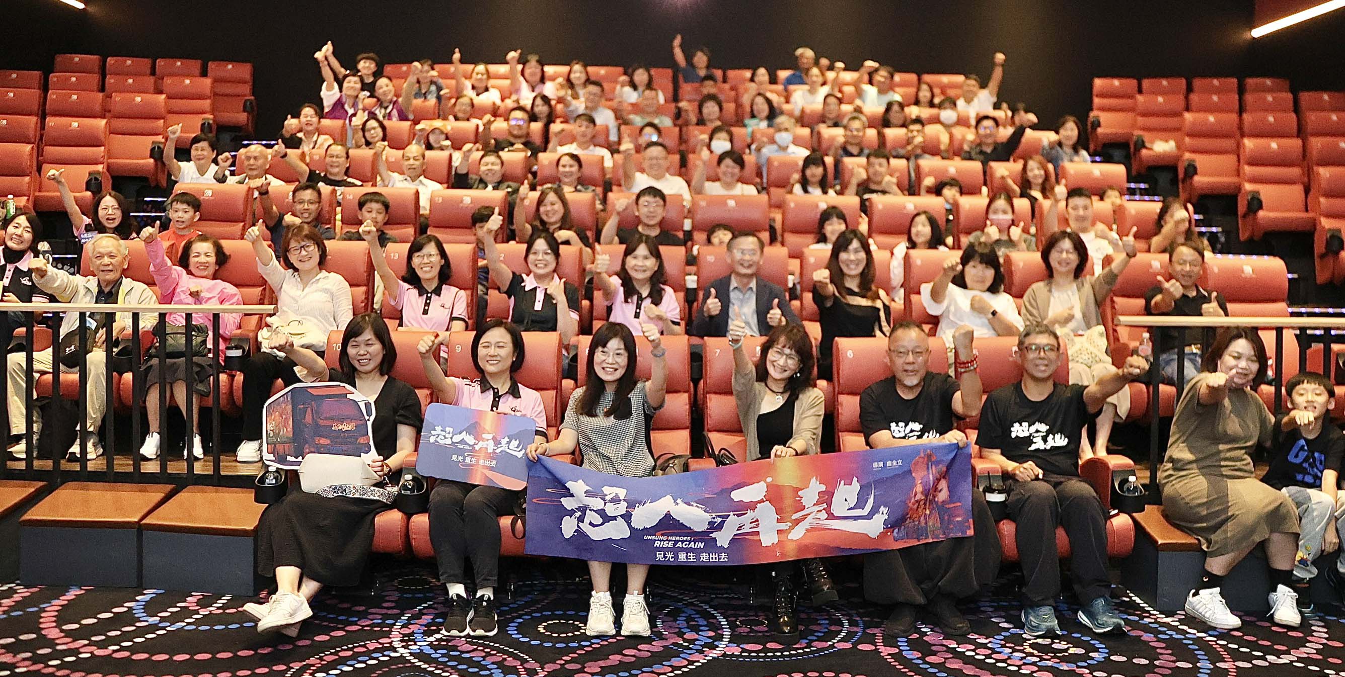 高市教育局主辦、三民區博愛國小協辦、美力台灣3D協會贊助4月26日前進高市圖書館總館喜樂影城包場獻映台灣超人系列續作「超人再起」,慰勉教育夥伴辛勞,高市府參事陳佩汝(圖一左三)、教育局主秘歐素雯、美力台灣創辦人、導演曲全立(圖一右四)、美力台灣3D協會理事長趙文豪等人同場聆賞,主辦單位感謝校長協會、高市各級學校家長會長協會、高市愛教育會長協會、心家長協會、家長關懷教育協會、高市家長協會、全人教育家長協會、家長教育志工協會、家長學思才教育協會、家長教育促進聯盟、家長關懷弱勢教育協會等單位共襄盛舉。