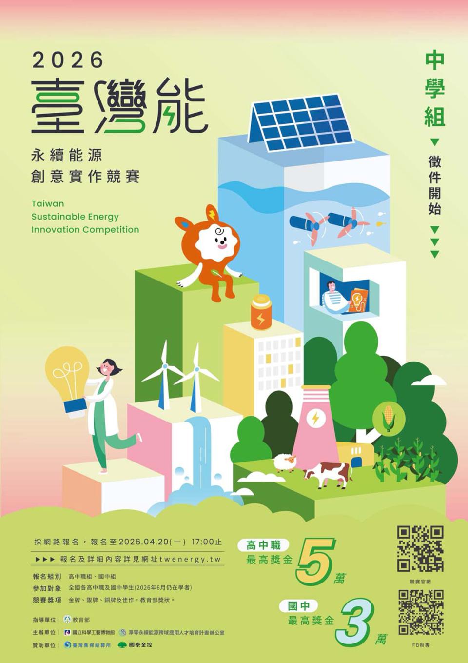 科工館攜手淨零永續能源跨域應用人培辦公室 2026臺灣能實作賽最高獎10萬元