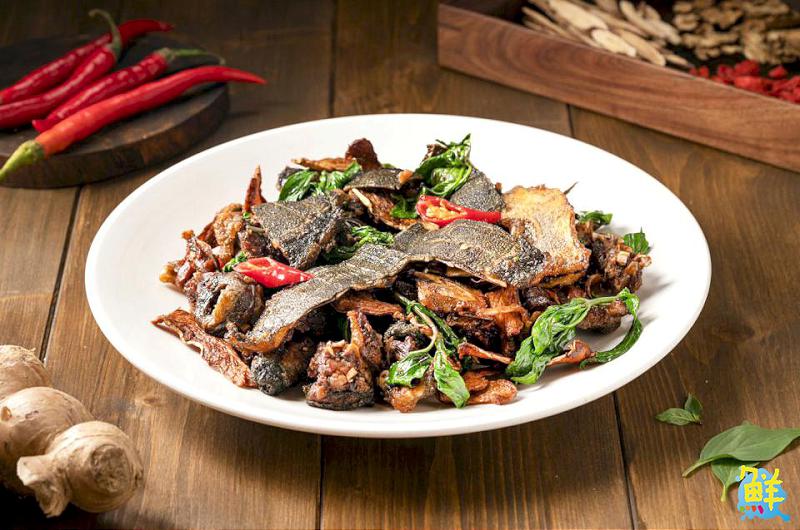 ▲三杯鱉/獨特的醬香與九層塔的提味讓鱉肉更顯彈牙,口感層次豐富,十分下飯。
