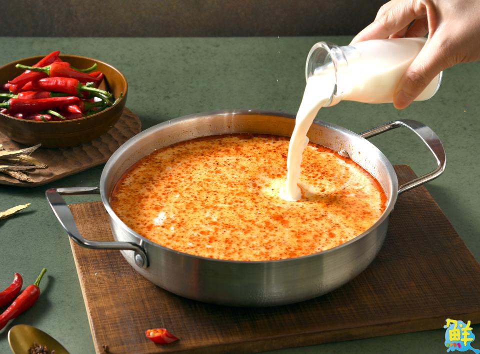 ▲鮮奶麻奶饌鍋:金獎鍋底就是它!鮮乳與麻辣的絕佳組合,與食材共煮,湯汁滲入食材中,每口都是湯底的香濃麻辣,為口感更添戲劇性變化!