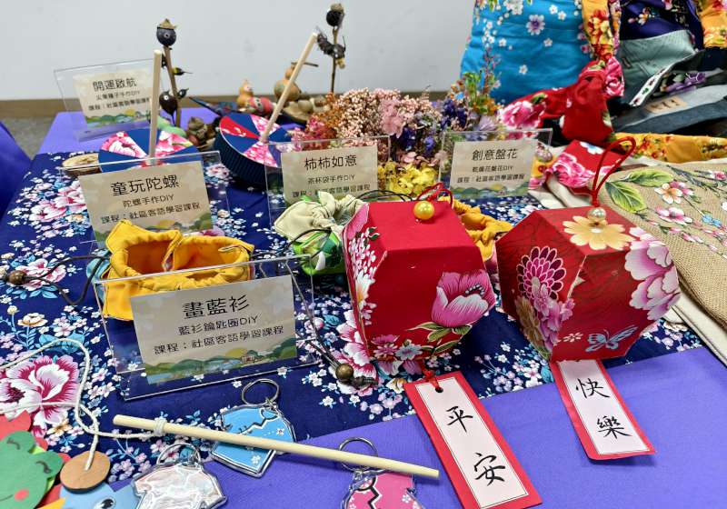 ▲「手作‧客語」展區呈現客語家庭學習班的花布拼貼作品