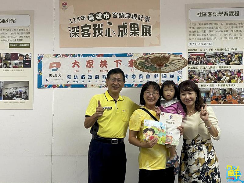 高雄市政府客家事務委員會主委楊瑞霞表示,高市府推動客語深根,今年更首度在區公所與衛生所開辦職場客語班,協助第一線服務人員打造更友善的客語服務環境。同時,以米食文化、花布工藝、客庄建築、親子表演、影音創作、客庄走讀等六大主題,推動客語融入家庭與社區日常,並培訓近20位客話講故事志工走入圖書館推廣閱讀。