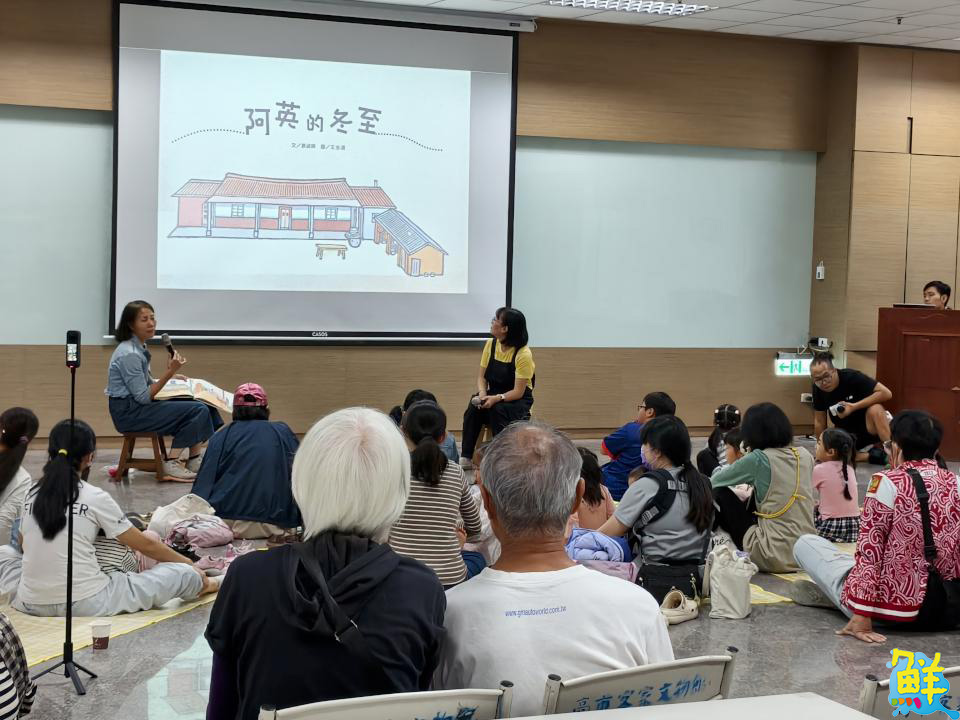 ▲呼應冬季節俗,故事志工帶領親子共讀繪本〈阿英的冬至〉