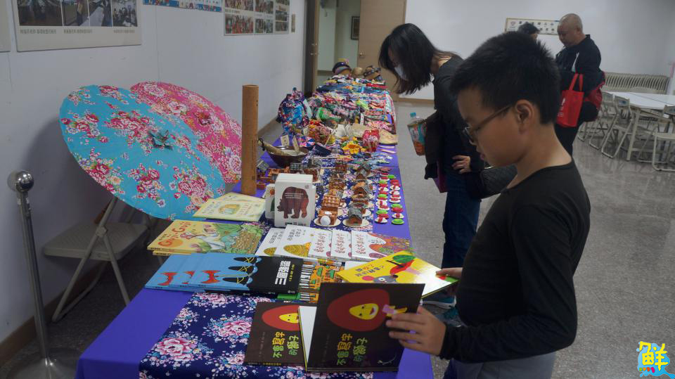 ▲現場展示許多參與114年客語深根課程學員的創作,吸引民眾欣賞及翻閱繪本。