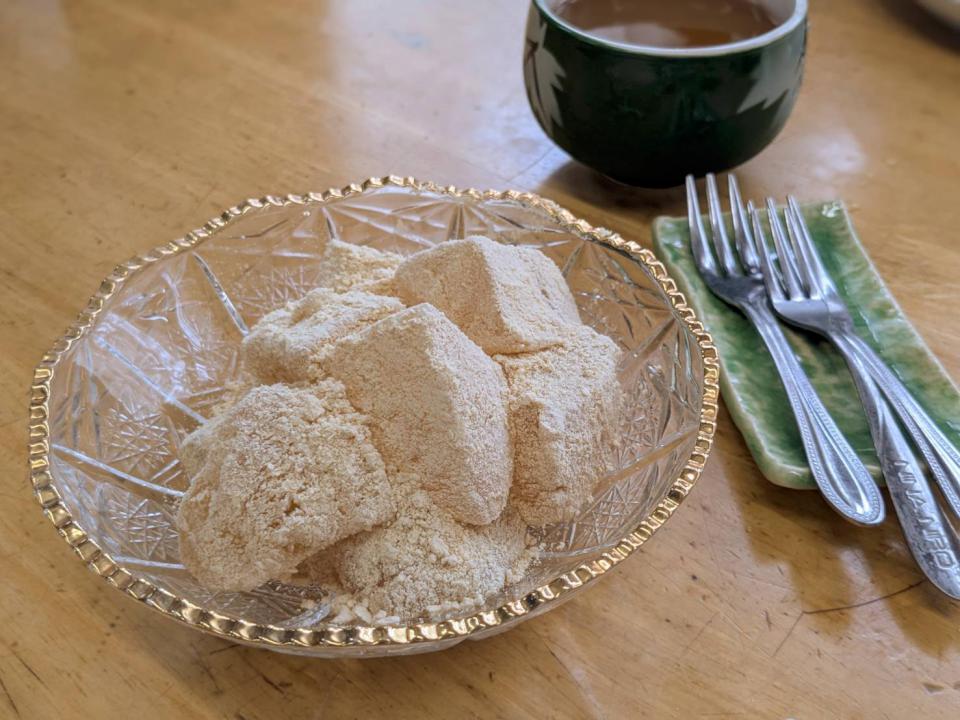蕨餅,不靠雞蛋或麵粉,全靠「水」凝結成形——原理就像台灣的愛玉一樣。