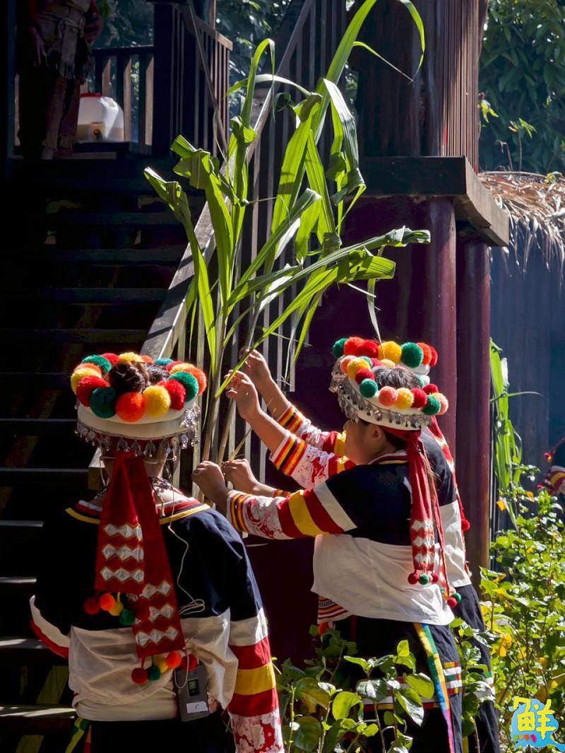 在祭儀進行時,翁博學耆老以苧麻纖束祈福,象徵揮別陰霾、迎接天神賜福,並將滿滿祝福分食給在場貴賓,為眾人祈求平安順遂。儀式結束後,由協會理事長施榮宗帶領貴賓們沿著場邊拜訪各家家屋,向族人致意交流,現場氣氛熱絡溫馨,展現卡那卡那富族延續傳統、凝聚族人情誼的深厚文化力量。