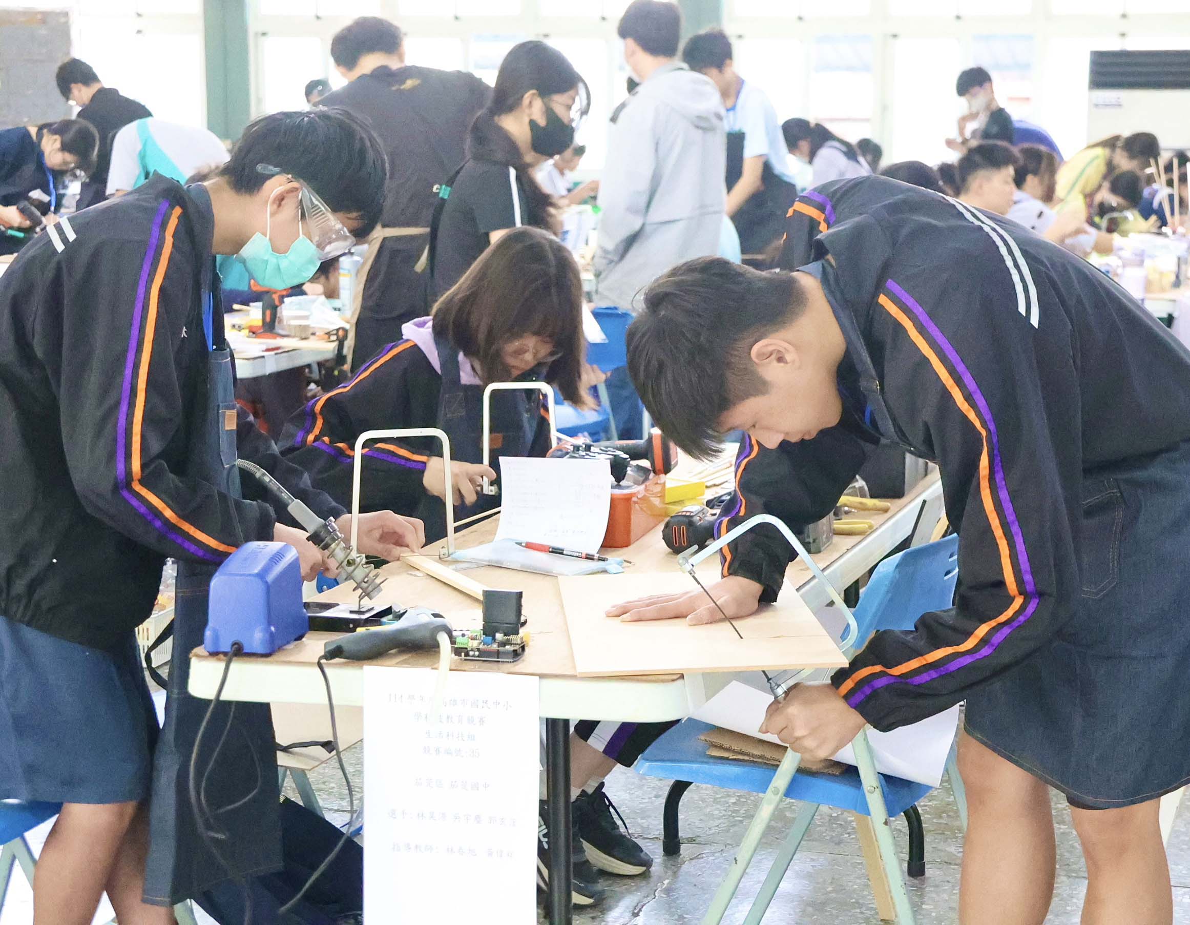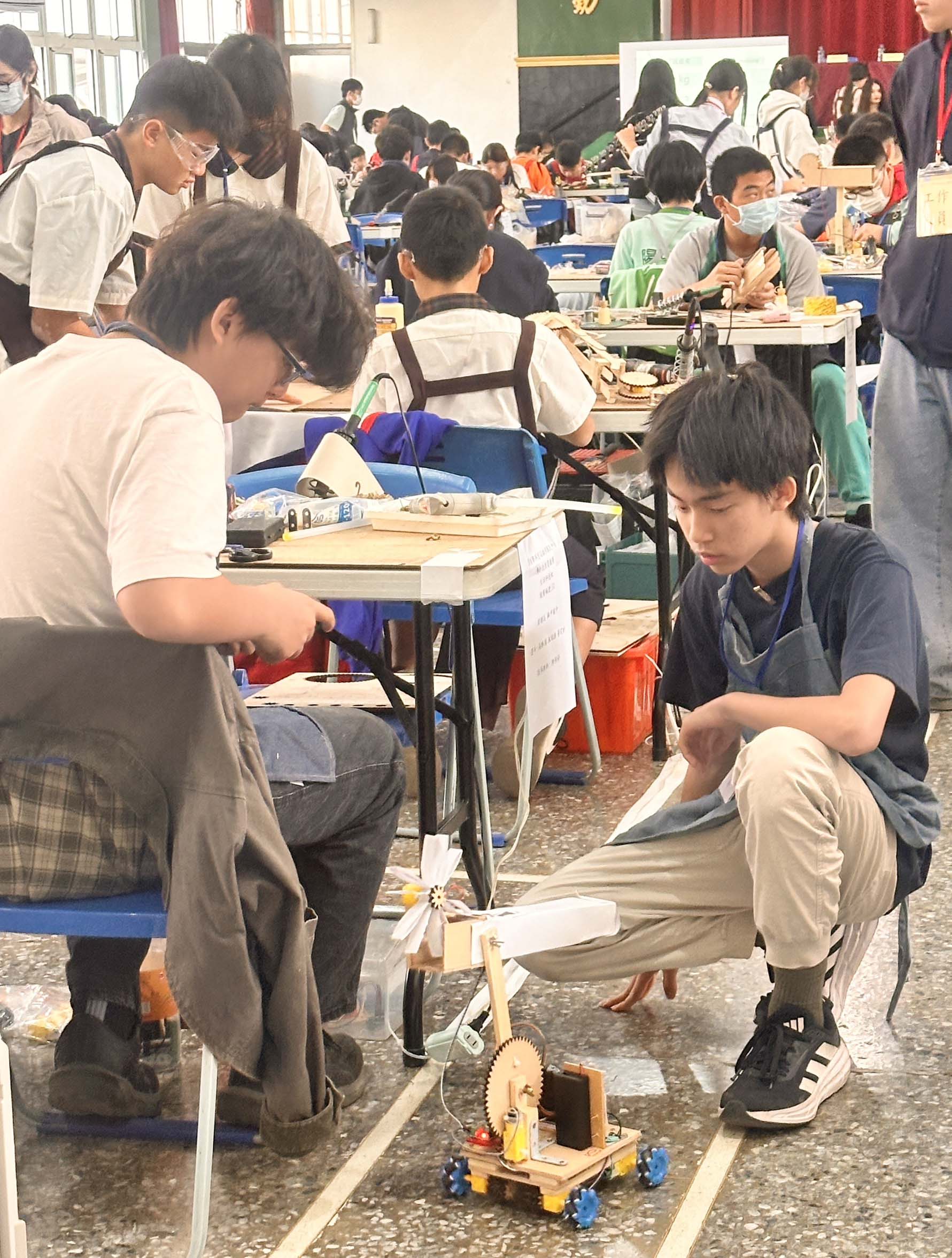 114學年度高市國中科技教育競賽1月24日在大榮中學舉行,主題定為智慧城市的資源回收物流挑戰,54隊、162名選手同場競技,現場製作物質運輸車,考驗機構結構創意、理解電與控制原理與解決問題等能力。