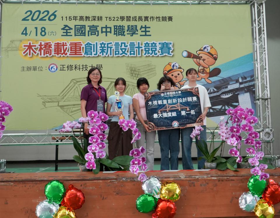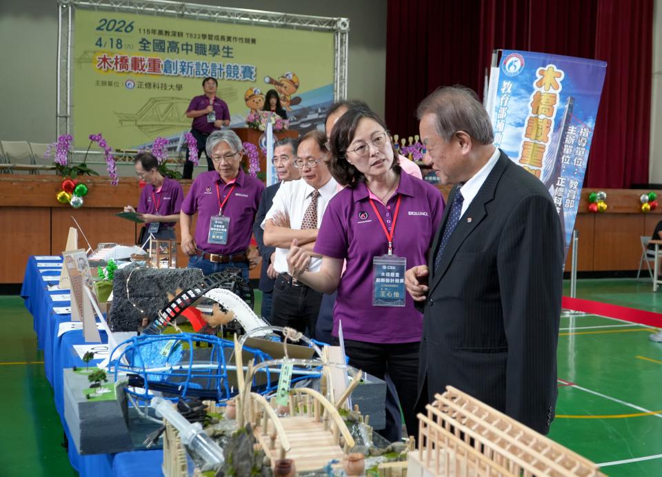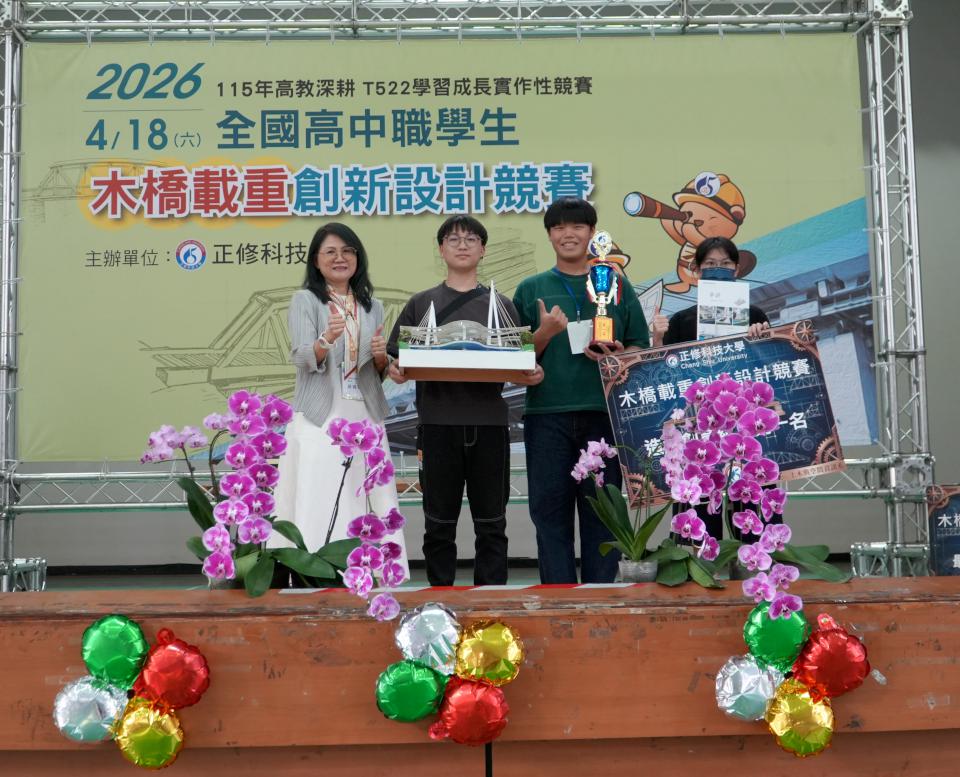 高市正修科技大學土木與空間資訊系第20屆木橋載重創新設計競賽4月18日舉行,規劃創意造型獎與強度設計獎兩類,吸引全台27校、194隊、800名選手、76名指導老師同場競技,正修科大校長龔瑞璋說,參賽競爭同時學習成長,感謝參賽師生支持。