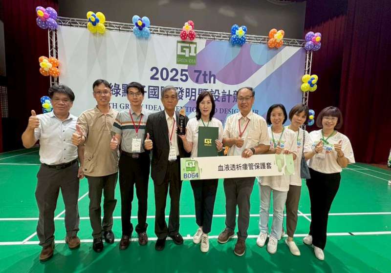 高市正修科技大學與國際發明學會8月1日及2日合辦2025年第7屆綠點子國際發明暨設計競賽,新加坡、韓國、馬來西亞、台灣等9國、超過200隊、197件作品同場競技,角逐設計、發明類社會、青少等三組最高榮譽,奇美醫療財團法人柳營奇美醫院護理部部長蕭素秋領軍團隊拿下評審團首獎及10萬元獎金。