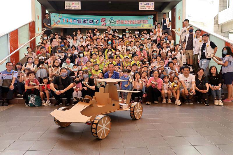 活動結合「偏鄉親子藝文培力~都會美學暨劇場同歡」計畫,杉林區月美國小校長邱怡和、仁武區八卦國小校長吳軒銘、林園區林園國小校長洪琮琪、主任王聖文、大寮區大寮國小主任林佳蓉、鳳山區曹公國小組長葉千榕等人率140名師生體驗組裝太陽能賽車,並同場聆賞成果發表。圖/社教館提供、文/高培德