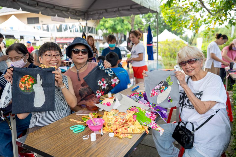 ▲展現創意,民眾秀出自已DIY的花布托特包