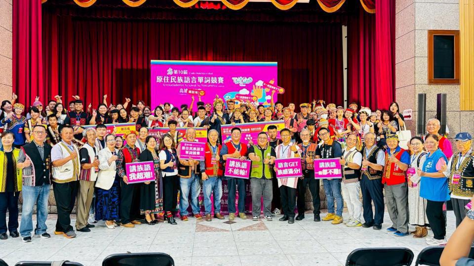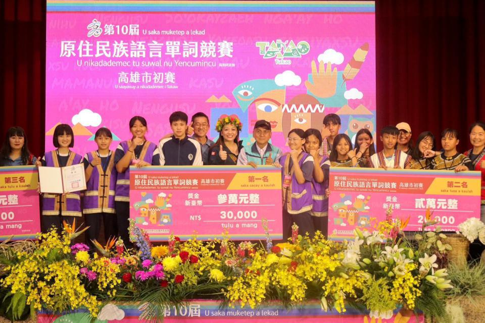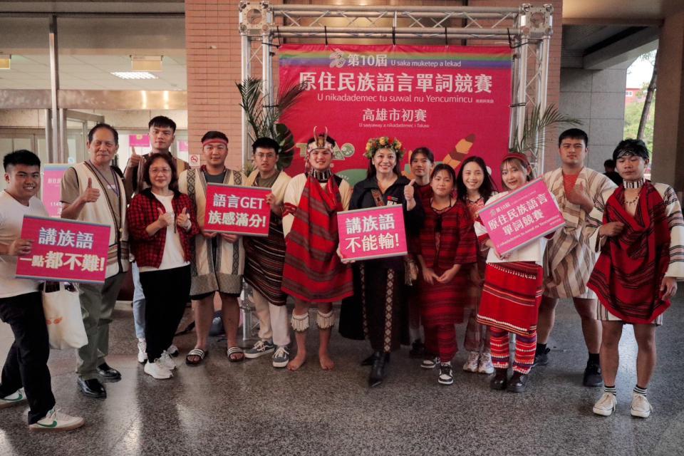 高雄市政府原住民事務委員會25日(五)於高雄市鳳山行政中心後棟1樓大禮堂舉辦「第十屆原住民族語言單詞競賽高雄市初賽」,比賽隊伍來自高雄市各地38隊340多位選手,最終會有13組隊伍脫穎而出,並代表高雄出征全國賽。 今年族群展演也請到高師大Sapuy撒布依青年會以及南區泛文面青年會帶來一連串的傳統古謠,讓此次的賽事帶來不同文化的精彩演出。決賽精彩畫面也透過本會粉專全程直播,讓無法蒞臨現場觀戰的朋友能透過網路,共同感受現場緊張萬分的賽況,並為選手加油。