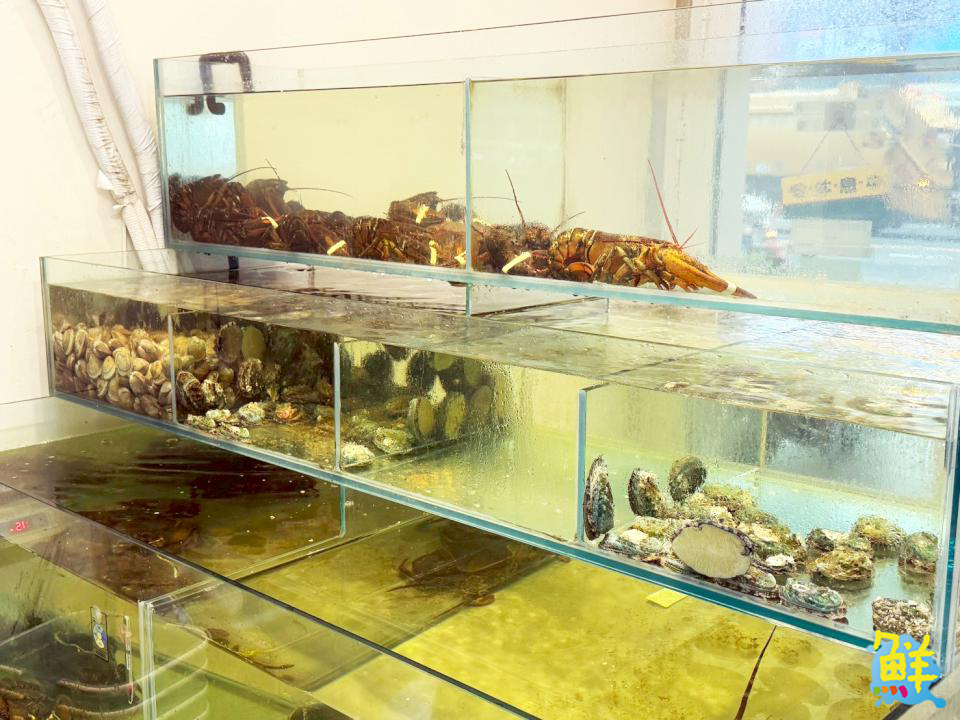 ▲新鮮看得見!踏進店裡,水族箱裡活跳跳的龍蝦、肥美螃蟹與鮮活蝦類瞬間吸睛。