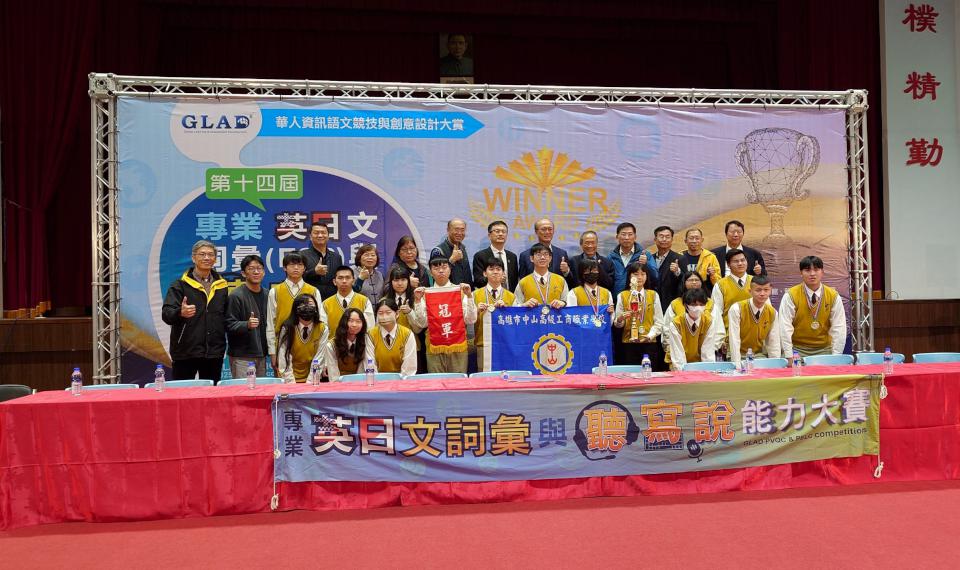 高市中山工商19名選手挑戰國立臺灣師範大學、國立臺灣科學教育館與新北市政府教育局合辦第14屆專業英日文(ESP)詞彙與聽寫說能力全國總決賽,摘下7冠軍、6亞軍、3季軍與金腦獎,其中8人滿分,刷新校史記錄,校長李昱平說,賽事涵蓋觀光、餐飲、商業與管理、電機與電子、機械工業、汽車工業、數位多媒體設計、教育、美容彩妝及日文等領域,考驗學生外語應用專業情境實力。