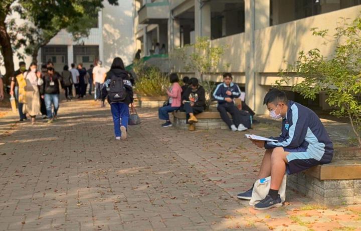 1月19日續考數學B、社會兩科,中山大學提醒考生攜帶有效證件應試,並勿攜帶手機入場。圖/中山大學提供、文/高培德