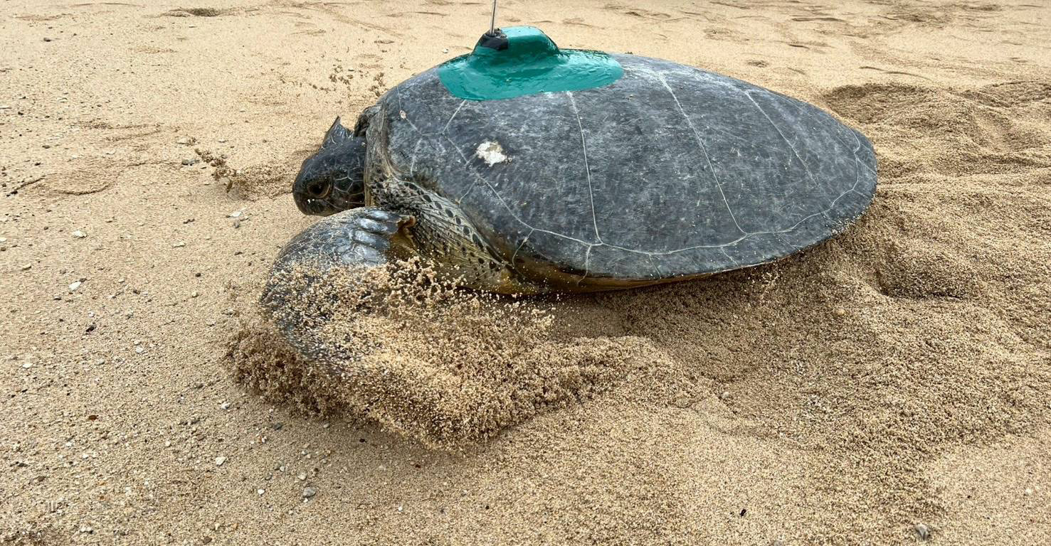 海保署等3單位裝設衛星發報器 追蹤屏縣琉球鄉海龜睽違2年洄游產卵 2026/01/31 高培德 227延續2023年首次現蹤屏東縣琉球鄉蛤板灣產卵並標註TWOCA0605,母海龜2025年12月16日返回同一沙灘,海洋保育署與社團法人台灣咾咕嶼協會、國立海洋生物博物館裝設衛星發報器,追蹤產後洄游路徑與覓食棲地。 海保署表示,琉球鄉114年3月至11月紀錄5隻母龜產卵38窩,其中TWOCA0605產卵7窩559顆,孵化459隻,成功率達83%,114年蛤板灣紀錄17處卵窩,排名全台首位,海保署籲請民眾如發現海龜受困待援可利用市民服務專線1999或海巡專線118通報。圖/海保署提供、文/高培德